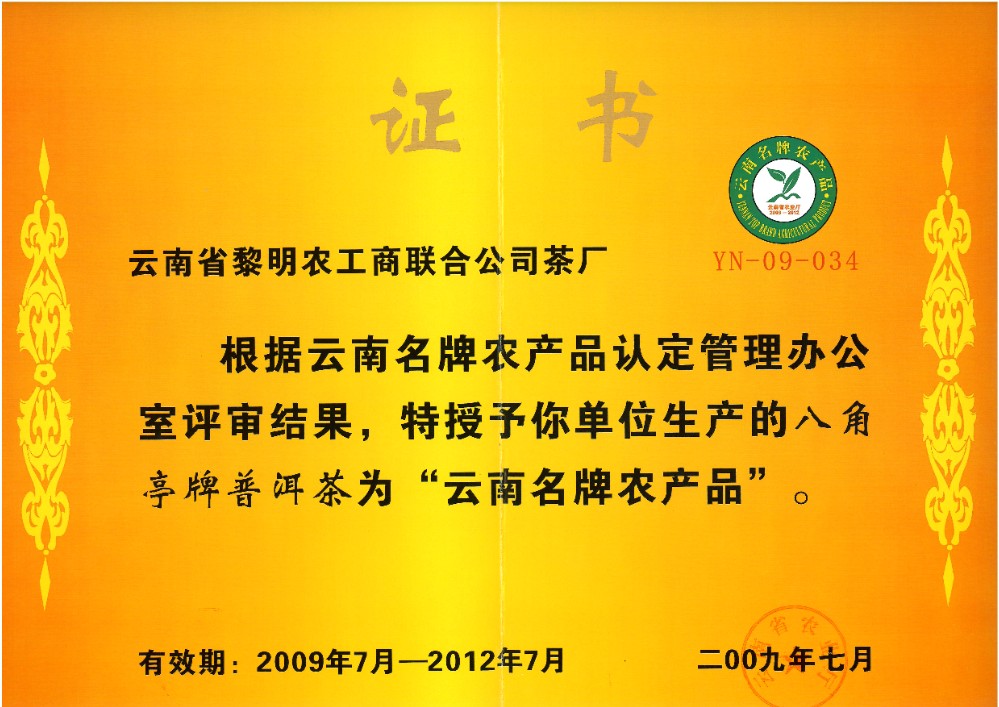 首頁 > 榮譽資質 > 2009年云南名牌農產品