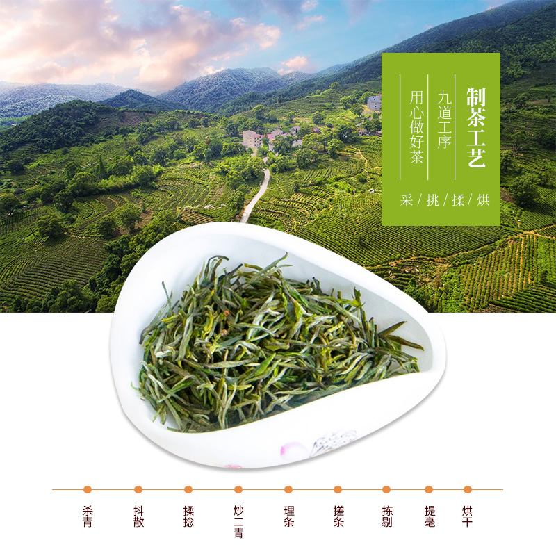廬山云霧茶,色澤綠潤多毫,條索緊湊秀麗,香氣鮮爽持久,滋味醇回甘,湯色清澈明亮,葉底嫩綠勻齊。通常用"六絕“來形容廬山云霧茶,即"條索粗壯、青翠多毫、湯色明亮、葉嫩勻齊、香凜持久、醇厚味甘”。云霧茶風味獨特,由于受廬山涼爽多霧的氣候及日光直射時間短等條件影響。形成其葉厚,毫多,醇甘耐泡的優異品質。