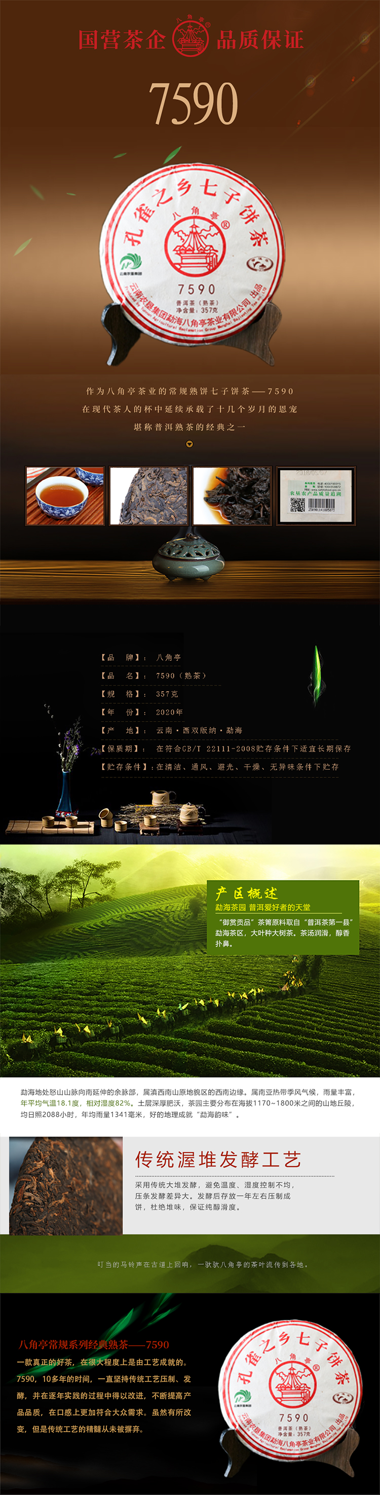 云墾茶業(yè)集團下屬茶葉生產(chǎn)企業(yè)——云南農(nóng)墾集團勐海八角亭茶業(yè)有限公司原名黎明茶廠,是我國歷史最為悠久的茶企之一,曾位列“中國普洱茶十大知名品牌”“十大最受歡迎茶葉品牌”、“中國普洱茶十大暢銷品牌”中,成為今天市場上最有影響力的品牌之一。公司產(chǎn)品獲得“綠色食品”、ISO9001、 HACCP和云茶品牌(YC)4項認證,連續(xù)獲得“云南名牌農(nóng)產(chǎn)品”“云南名牌產(chǎn)品”“云南省著名商標”等品牌榮譽,公司生產(chǎn)的多款普洱茶在歷次專業(yè)評比中多次獲得特等金獎和金獎。在2018第五屆中國企業(yè)五星品牌論壇上,云南農(nóng)墾集團勐海八角亭茶業(yè)有限公司上榜中國普洱茶行業(yè)影響力品牌——“金芽獎”,公司負責(zé)人陳勝軍先生獲“陸羽獎”,被授予2017“國際十大杰出茶人”榮譽稱號。