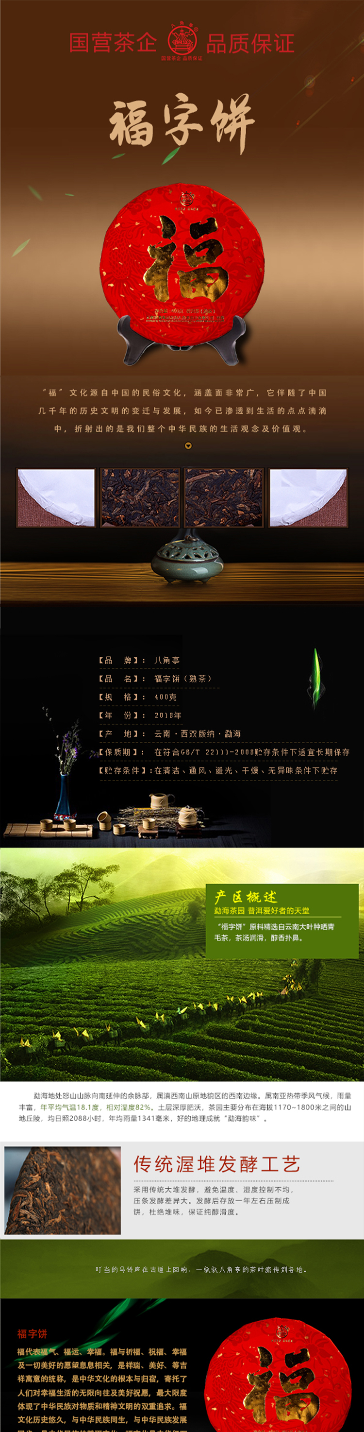 云墾茶業(yè)集團(tuán)下屬茶葉生產(chǎn)企業(yè)——云南農(nóng)墾集團(tuán)勐海八角亭茶業(yè)有限公司原名黎明茶廠,是我國歷史最為悠久的茶企之一,曾位列“中國普洱茶十大知名品牌”“十大最受歡迎茶葉品牌”、“中國普洱茶十大暢銷品牌”中,成為今天市場上最有影響力的品牌之一。公司產(chǎn)品獲得“綠色食品”、ISO9001、 HACCP和云茶品牌(YC)4項(xiàng)認(rèn)證,連續(xù)獲得“云南名牌農(nóng)產(chǎn)品”“云南名牌產(chǎn)品”“云南省著名商標(biāo)”等品牌榮譽(yù),公司生產(chǎn)的多款普洱茶在歷次專業(yè)評比中多次獲得特等金獎(jiǎng)和金獎(jiǎng)。在2018第五屆中國企業(yè)五星品牌論壇上,云南農(nóng)墾集團(tuán)勐海八角亭茶業(yè)有限公司上榜中國普洱茶行業(yè)影響力品牌——“金芽獎(jiǎng)”,公司負(fù)責(zé)人陳勝軍先生獲“陸羽獎(jiǎng)”,被授予2017“國際十大杰出茶人”榮譽(yù)稱號。