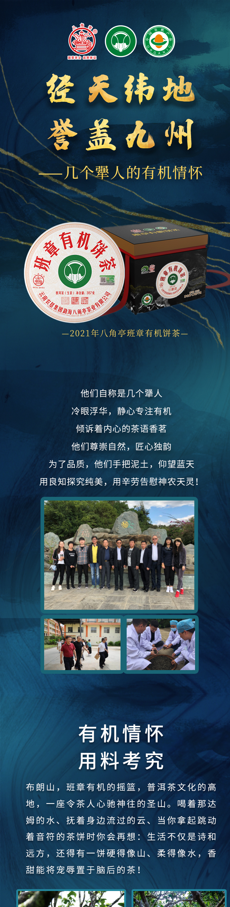 ??——八角亭茶業(yè)公司:經(jīng)營(yíng)方式為生產(chǎn)加工、銷售,主營(yíng)普洱茶、緊壓茶、兼營(yíng)毛茶收購(gòu)。目前以生產(chǎn)、加工、銷售“八角亭”系列普洱茶為主,是云南省農(nóng)業(yè)產(chǎn)業(yè)化龍頭企業(yè)。“八角亭”商標(biāo)獲得云南省著名商標(biāo),“八角亭”牌普洱茶榮獲云南省名牌產(chǎn)品和云南省名牌農(nóng)產(chǎn)品。已先后通過(guò)工業(yè)生產(chǎn)許可證、ISQ9001與HCCP認(rèn)證、云茶牌認(rèn)證(YC)等項(xiàng)工作,在歷次專業(yè)評(píng)比中“八角亭”普洱茶多次獲得特等金獎(jiǎng)和金獎(jiǎng)。2017年5月,“八角亭”牌老班章茶葉獲得了有機(jī)茶資格認(rèn)證。八角亭茶業(yè)公司多次進(jìn)行了技術(shù)改造,現(xiàn)已建立了標(biāo)準(zhǔn)化生產(chǎn)車間和設(shè)備,年設(shè)計(jì)生產(chǎn)量達(dá)3000噸,是整個(gè)公司的主體核心企業(yè)。